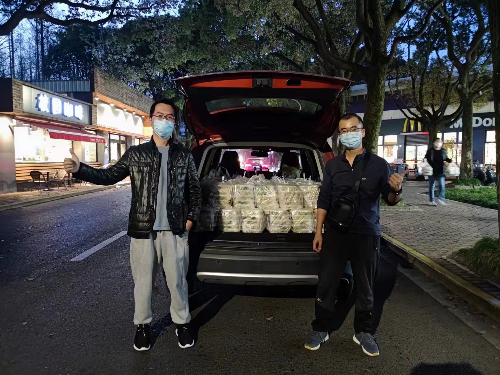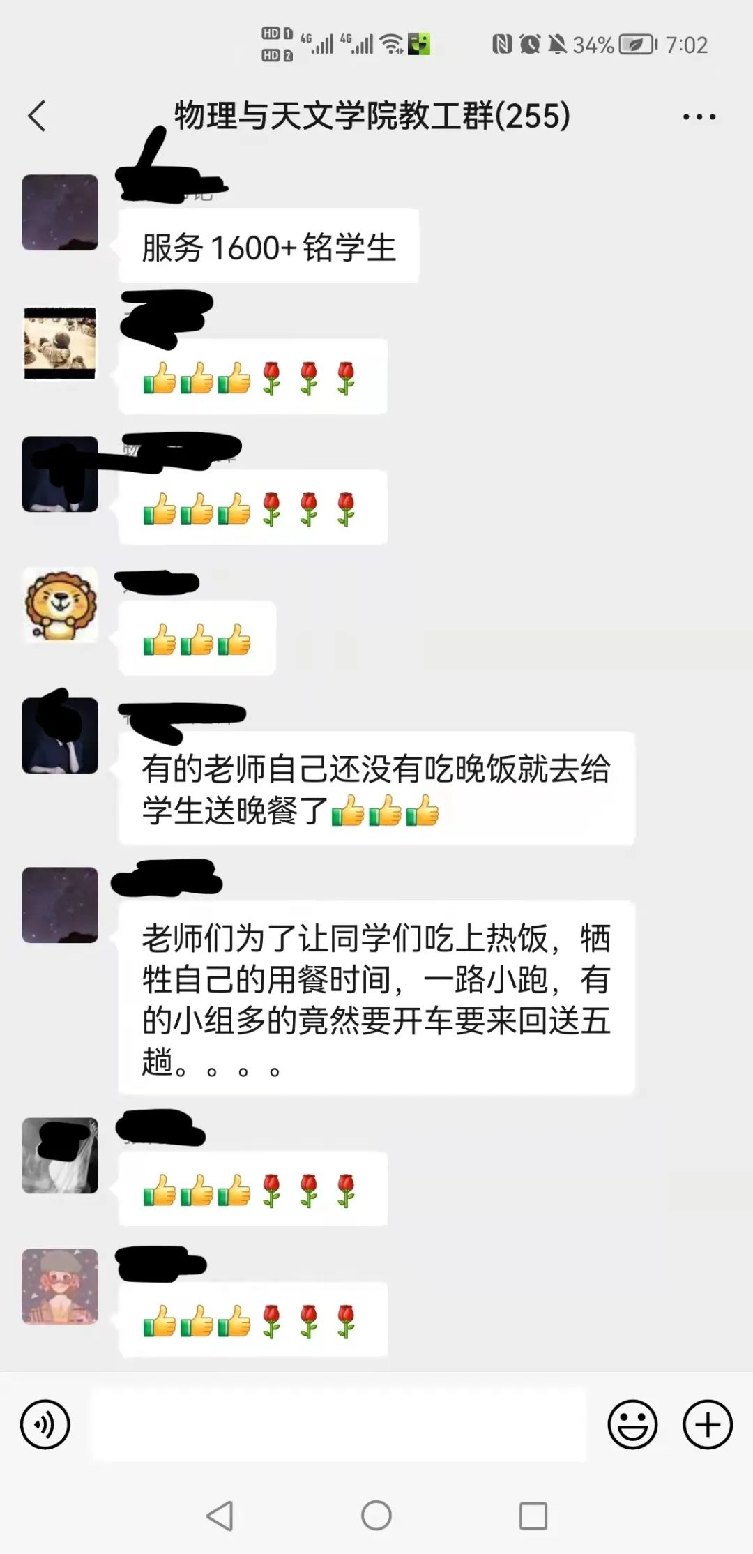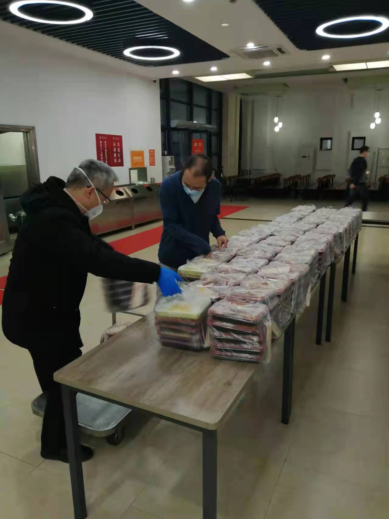 教师齐送餐,饭热心亦暖。疫情发生后,公司领导、思政教师、留校教师迅速响应号召,站在了疫情防控的第一线,担负起六栋宿舍楼员工的一日三餐,每次1600余份盒饭 往返食堂宿舍十余次,用行动与关爱筑起一道道爱的围墙,最高学历“外卖员”,你们是最可爱的人!