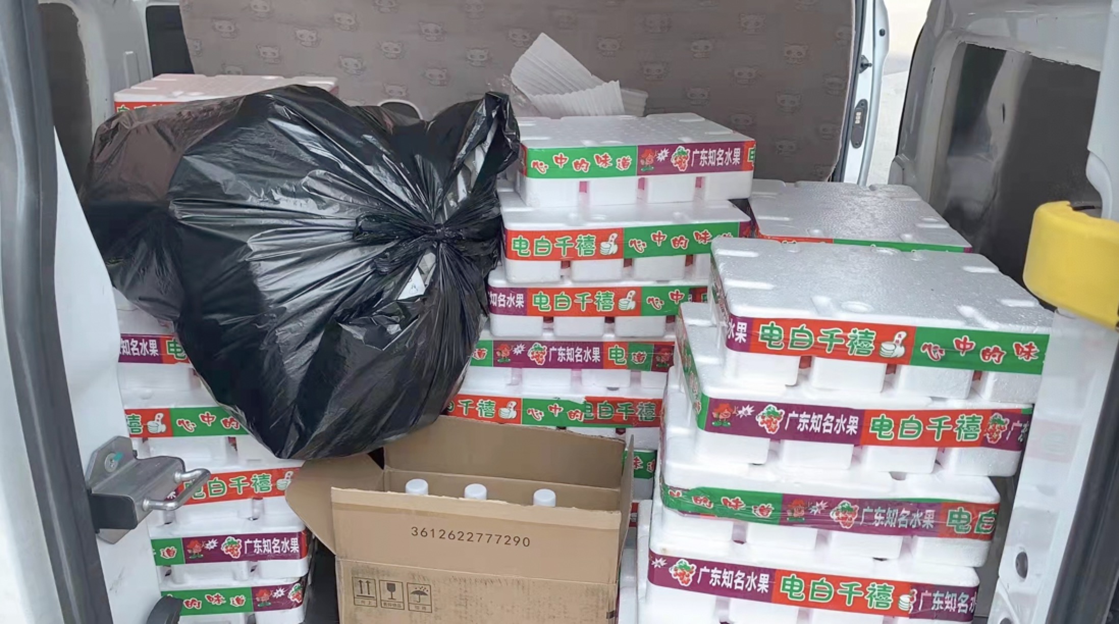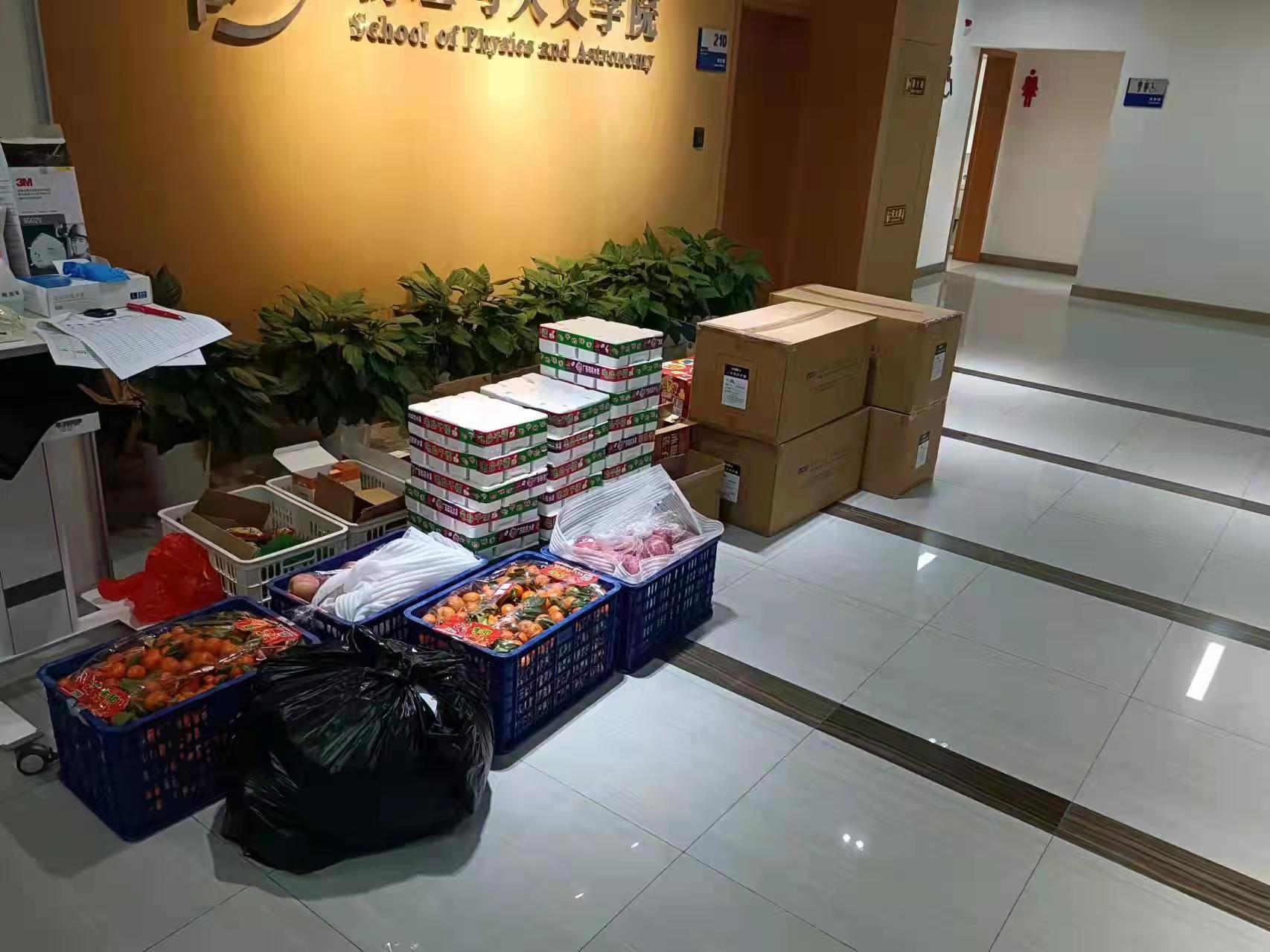 员工捐赠的抗疫物资和水果送到公司