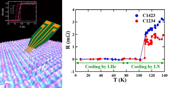 2012年,清华大学薛其坤教授研究组利用分子束外延生长技术,以STO为衬底,首次成功生长了单层的FeSe薄膜,并发现该薄膜具有20 meV的超导能隙,意味着其超导转变温度有可能超过液氮(77 K)温度。随后,中科院物理所周兴江研究组和复旦大学封东来研究组的变温角分辨光电子谱研究分别显示,该体系的电子结构不同于体相FeSe,其超导能隙直到65 K甚至70 K才消失。但是,在盖有保护层的单层FeSe/STO上的传统输运测量只给出了23K的零电阻温度,远远低于人们的预期。
