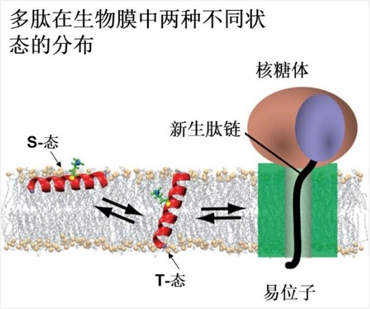 疏水蛋白质螺旋片段的生物膜插入是膜蛋白合成中关键的第一步。正确识别蛋白序列中的这些跨膜区域对于预测并找到那些能编码膜蛋白的基因是必须的。几年前Gunnar von Heijne和 Stephen White等人发现,膜蛋白合成中的关键蛋白易位子是根据统计热力学的能量标准决定新合成的多肽片段是否应该插入生物膜形成跨膜螺旋片段(Hessa et al. Nature 2005, 433, 377-381 &Hessa et al. Nature 2007, 450, 1026- 1030)。这些基于体外实验测得的蛋白质螺旋片段膜插入概率跟已有关于膜蛋白的理论和计算模型并不一致,特别是对于包含带电氨基酸的蛋白片段。目前只有很小一部分膜蛋白的结构得到了确定(http://blanco.biomol.uci.edu/mpstruc/),关于膜蛋白的绝大部分信息都来自基因组筛选得到的序列数据。因为目前的理论模型是在基因组中识别膜蛋白序列的唯一工具,所以易位子协助下蛋白质片段的膜插入概率预测模型的准确性对于膜蛋白生物学的研究非常重要。