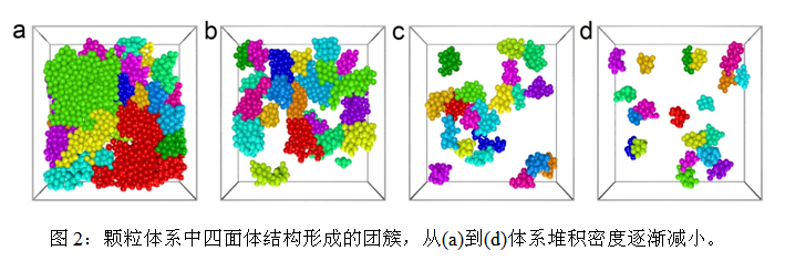 在上述研究工作中,王宇杰研究组利用上海光源13W线站和美国阿贡国家实验室的先进光源32ID线站的同步辐射高速CT成像技术,对三维的颗粒堆积体系的微观结构及动力学进行了实空间的成像。研究发现颗粒体系中的玻璃化转变可能是非常类似于晶体结晶过程的一种特殊结构相变。其对应的玻璃结构序是一种局部紧密堆积的四面体结构,这些四面体结构可以生长形成具有分形结构的团簇,同时其形状及大小的增长符合位形熵驱动的成核模型,这些都非常类似于快速降温的晶体生长模型。同时他们也发现结构对关联函数对该种结构序非常不敏感。这也解释了为何长期以来学术界“公认”玻璃化转变不对应于结构上的太大变化,因为过去几乎所有的玻璃结构研究都基于散射技术(结构对关联函数的傅立叶变换)。