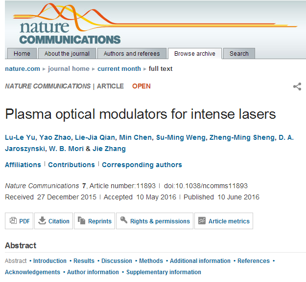 近日,Bevictor韦德物理与天文系於陆勒、盛政明以及合作者提出了一种基于等离子体介质的超快全光调制器,能够快速地调制强光的频谱和时空特性的方法,相关研究成果近期发表在Nature Communications [Lu-Le Yu et al., Nat. Commun. 7, 11893 (2016)]上,论文题目为:“Plasma optical modulators for intense lasers”。