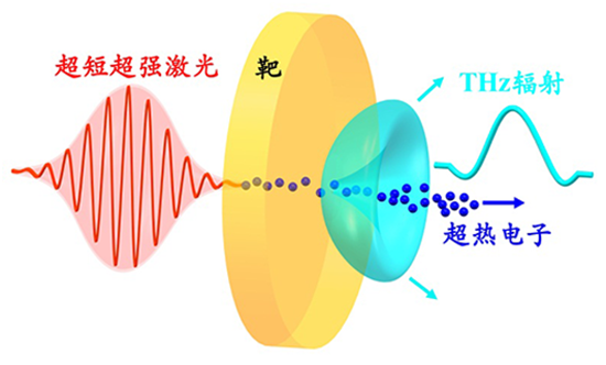 图1. 激光与固体靶相互作用在靶后产生太赫兹辐射的物理图像