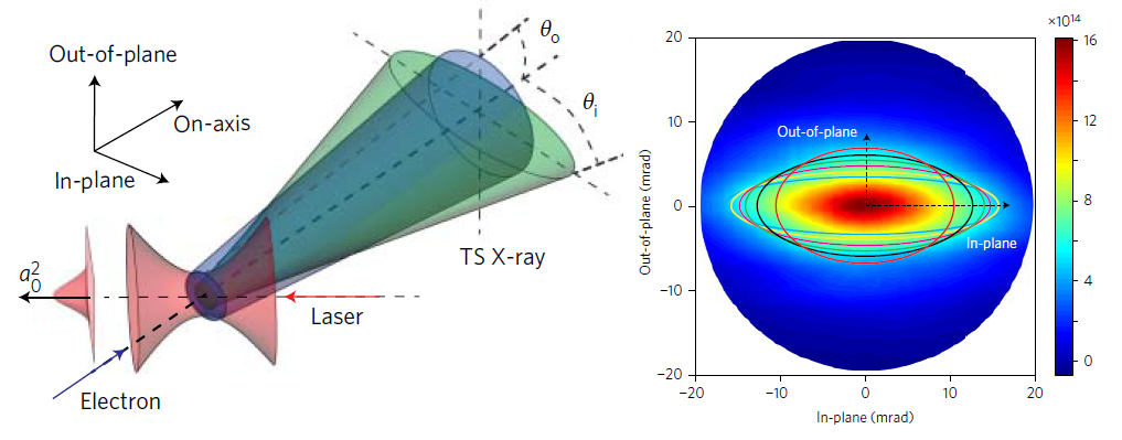 实验中他们利用一束强度为1019W/cm2的驱动激光通过尾波加速,在4毫米长度内把电子加速到360MeV,而后该电子束与另一强度高达3×1020W/cm2的激光束在飞秒及微米级时空尺度内实现同步对撞,发生高阶非线性汤姆逊散射。理论上他们通过自主开发的经典和量子辐射并行计算程序VDSR,通过数值模拟研究了电子束斑及激光强度分布效应,成功解释了实验测得的远场辐射菱形分布;理论模拟再现了测量频谱,给出了临界辐射频率。在实验可测量范围内,散射光子能量可以高达20MeV,该数据表明,发生了单个电子与500个红外光子的同时散射,比已有的非线性汤姆逊散射实验(n<10)几乎高出两个数量级;理论模拟研究表明,实际过程可能发生了高达1300个光子与电子的同时散射。这些实验与理论模拟结果,不仅为已有的单电子非线性汤姆逊散射理论提供了实验检验,也给出了电子束与超强激光束散射的新特征,为将来阿秒高能伽马射线源研究,及相关天体物理研究,如喷流X射线产生、超新星遗迹、恒星星云等离子体加热,光核物理等提供了基础。
