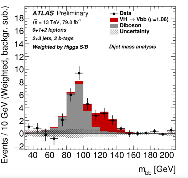 欧洲核子中心(CERN)大型强子对撞机实验(LHC)上的ATLAS大型国际实验合作组于7月9日在ICHEP2018国际高能物理会议上公布了首次发现希格斯粒重要的衰变过程——正反底夸克对衰变(H→bbbar),详见: