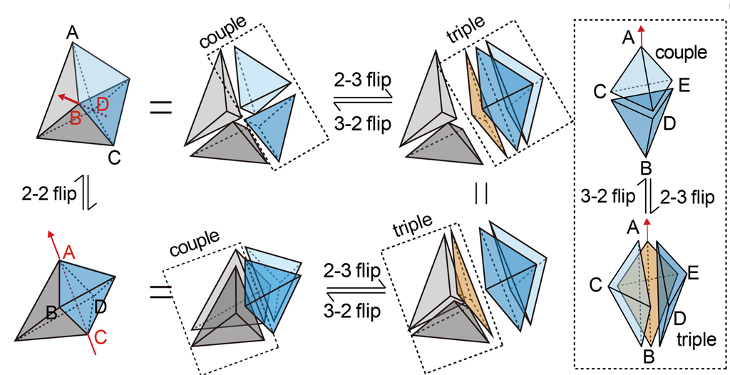 王宇杰课题组利用上海光源的原位CT成像装置获得了三维颗粒体系在剪切过程中的结构演化,并研究了其塑性变形的微观结构机制和结构缺陷。发现非晶体系中塑性的载体是非常类似于位错的另一种拓扑缺陷。在晶体中,位错是平动自由度的拓扑缺陷,发生在晶体结构序的缺陷处,晶体的塑性是通过位错的平移滑动来实现的。而在非晶体系中,他们发现塑性的载体不是点缺陷,而是和转动自由度关联的拓扑缺陷-向错。这种缺陷结构也同时对应于过去找到的非晶的四面体结构序的结构缺陷(变形非常严重的四面体结构,而且塑性变形是通过这种向错的空间旋转来实现的。这种具有普适性的缺陷概念表明各种非晶材料也许可以被统一在由旋转自由度决定的拓扑缺陷的框架中来研究。将研究的主体从结构序转到结构缺陷的好处在于即使在晶体中,也存在非常多的对称破缺的晶体序(面心立方、体心立方等),而缺陷的种类相对较少。同样在非晶体系中,对应的“非晶序”如果存在,也必然会强烈依赖于具体的非晶体系,而对应的缺陷的研究会使研究简化不少。