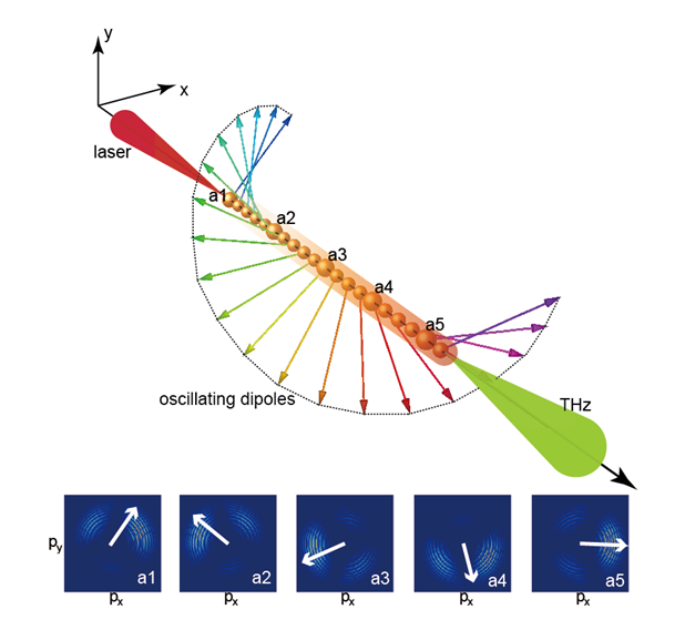太赫兹波是频率介于微波与红外之间的电磁辐射,大量有机大分子的振动和转动能级都落在这一范围,这预示着太赫兹辐射在生物医疗、材料科学等领域具有广泛的应用前景,被认为是“改变未来世界的十大技术之一”。产生频谱、偏振、功率等参数可调的太赫兹辐射是实现其广泛应用的前提,也是过去10多年人们一直在努力探索的课题。