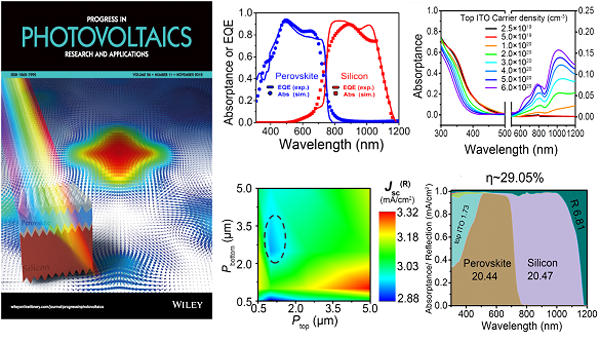最新一期的国际光伏科学与技术领域最高水平学术刊物《光伏研究及应用进展》【Prog. Photovoltaics: Res. & Appl. 26, 924-933 (2018)】以封面论文形式报道了Bevictor韦德太阳能研究所沈文忠/刘洪研究组在高效钙钛矿/晶体硅两端叠层太阳电池光学设计与优化方面的研究成果。全文参见:https://onlinelibrary.wiley.com/doi/abs/10.1002/pip.3037。
