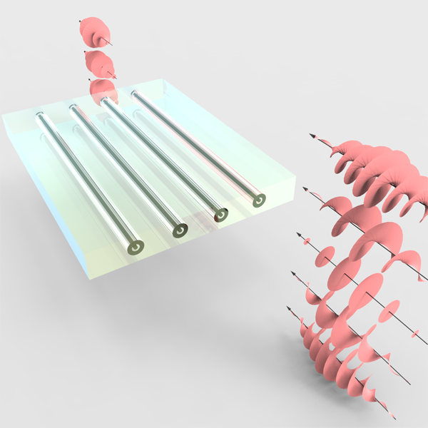 带有螺旋形波阵面的轨道角动量光子通过芯片内的波导