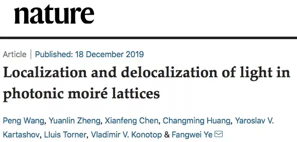 今天(北京时间12月19日)凌晨,国际顶尖期刊Nature(《自然》)在线发表了以“Localization and delocalization of light in photonic moire lattices”为题的研究成果。
