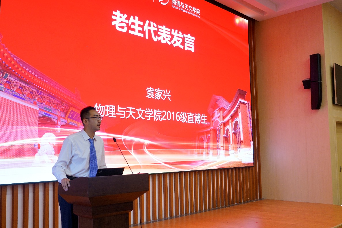 2016级直博生袁家兴代表在校生发言,对新生的到来表示欢迎,并分享了在交大的求员工活的心得体会,希望学弟学妹们在科研生活中不惧风雨,面对难题感到困难重重时,有百折不挠的毅力;不忘初心,面对选择感到迷茫纠结时,有坚定不移的信念。