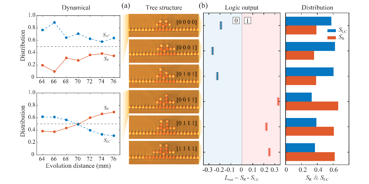 四输入量子与非逻辑门结果:(a)逻辑树截面(b)实验结果,详见论文