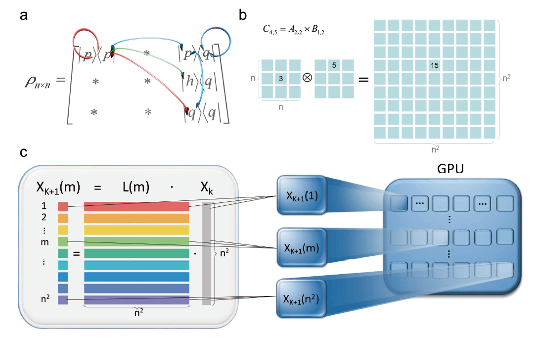图 1 量子随机行走、矩阵张量积求解、及本求解器框架示意图