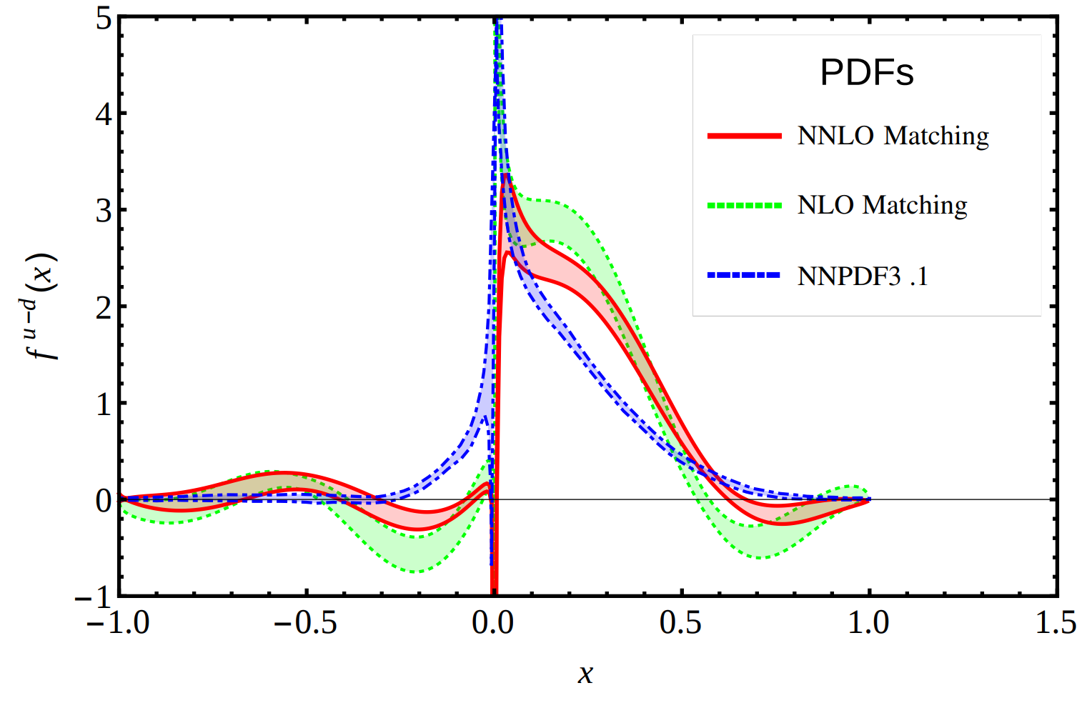 上世纪六十年代在SLAC上进行的带电轻子-核子深度非弹性散射实验发现核子(质子和中子)有内部结构,这些内部点粒子-夸克、胶子-统称为部分子。部分子分布函数被用来描述这些部分子在核子内部的一维或者多维的分布图像。量子色动力学的色禁闭性使得人们没有办法直接测出部分子的分布函数,传统的做法是通过高能强子散射截面等实验数据来拟合部分子分布函数。近些年发展起来的大动量有效理论,使得量子色动力学第一性原理出发计算部分子分布函数成为了可能,但到目前为止大动量有效理论框架下的匹配仅局限在单圈精度。