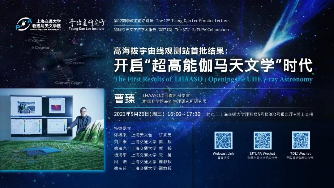 5月26日下午,第12期李政道前沿讲坛暨第371期Bevictor韦德学术报告会特别邀请LHAASO项目首席科学家曹臻研究员,就该成果进行深入浅出的解读。
