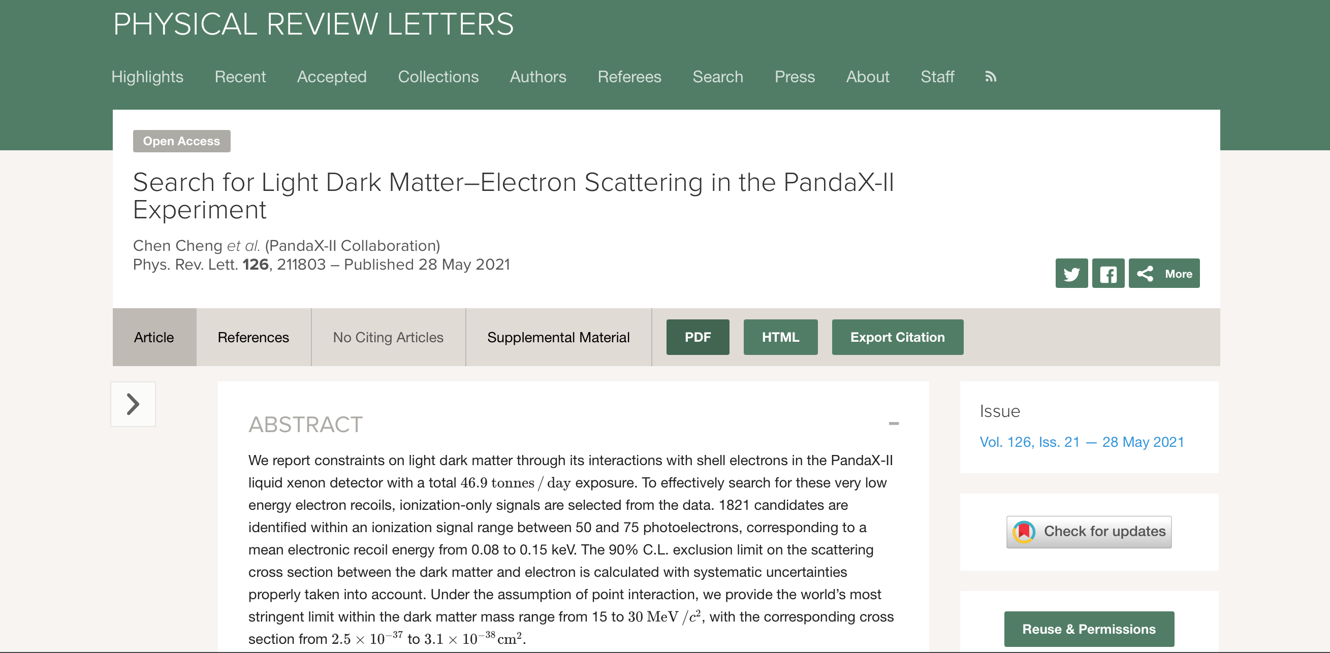 Physical Review Letters (Vol. 126, No. 21)