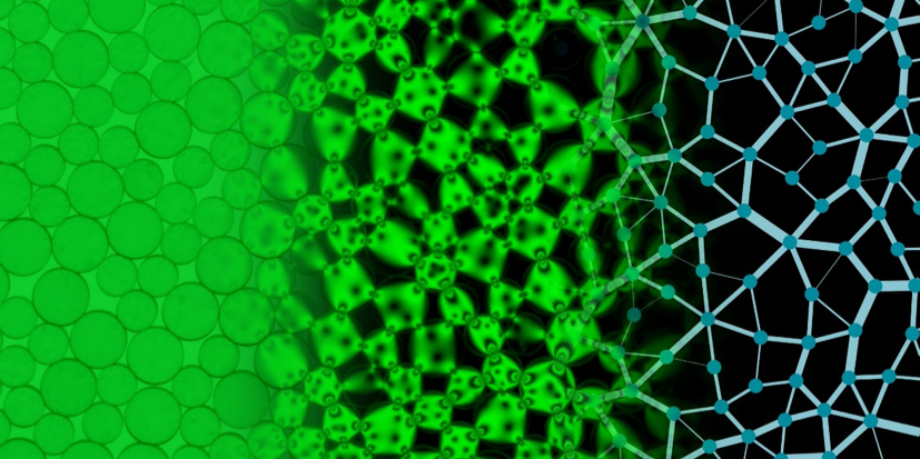 如图所示为光弹性颗粒组成的无序体系及其可视化的力链网络