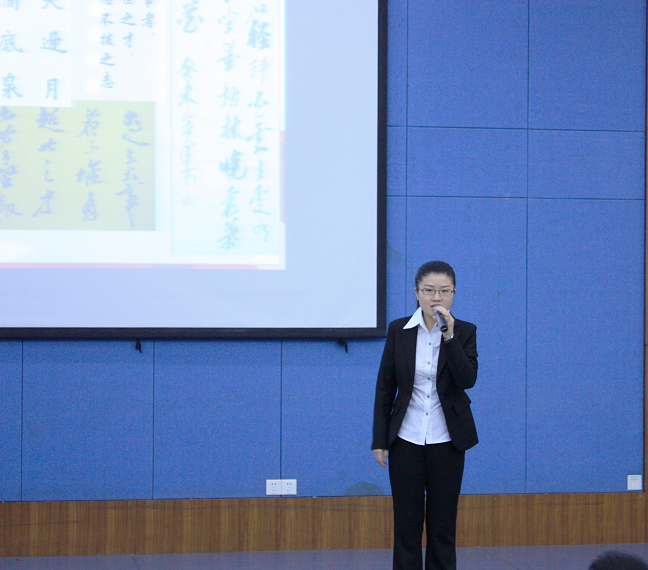 她始终沉着冷静,她不畏艰难困苦,她笑看云卷云舒。她—中国书法协会会员,演讲朗诵达人,研究生宿舍支部书记,连续两年优秀三好员工,上海市研究生物理学科创新论坛发言人,教育部颁发博士研究生学术新人奖交大第一名,连续三年蝉联国优奖学金,《实验室研究与探索》封面人物,全国百篇优博论文培养对象,她就是来自物理系的女博士-李金金。这个年仅25岁的女孩,在生活上不仅厚德载物、乐善好施、独当一面,在学术上更是只争朝夕、锐意创新、勇攀高峰。她在物理学科取得了一项又一项的骄人成绩,被美国物理中心,上海市新闻中心纷纷报道。2011年12月11日钱学森同志诞辰100周年,钱学森图书馆开馆,她作为优秀员工代表受到了中共中央政治局常委李长春同志的接见。2011年12月,李金金 获得了交通大学员工的最高荣誉—十大“三好标兵”的称号。下面就让我们走进这个物理系优秀博士生“三好标兵”的评选过程。