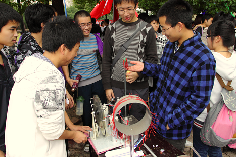 11月3日,在公司东区大转盘4号摊位,以普及物理常识、传播实验文化为主题的物理系“公司日”活动成功的开展了。一波又一波同学围过来,做实验,玩游戏,写祝福,成为东区一道亮丽的风景线!