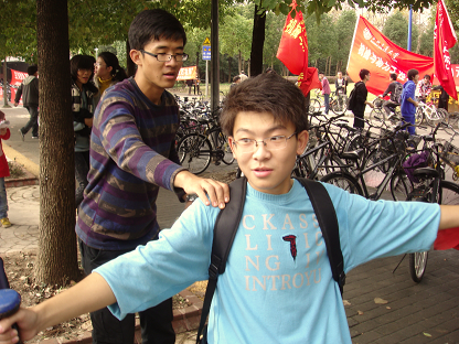 “哇,竖起来了!”看着演示的静电装置上逐渐展开的细线,一位女同学惊喜地大喊起来,一旁摇着静电发电机的负责人娓娓地讲述道:“很奇妙吧,其实这就是连接着这个雷登瓶的发电机在……”在演示台的前面,一张转椅也引来了不少人驻足观看。体验的同学坐在上面,双手紧握哑铃,在工作人员的推动下旋转起来,随着双手的展开、收合,转动的速度也明显的发生变化。“这就是角动量守恒的原理呀,原来是这样!”许多同学在这些趣味实验中对学过的物理原理又有了更深刻的理解,同时也提升了对实验的兴趣。