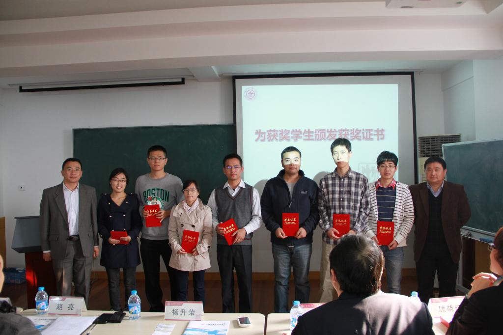 之后,各位获奖同学依次登上主席台接受现场嘉宾颁奖。获得欧普泰奖学金一等奖的博士生沈振华同学作为获奖员工代表发言,对欧普泰公司和众多优秀系友表示了衷心的感谢,同时表达了今后要再接再厉,锐意进取的决心。