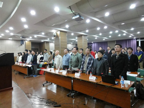 物理系党总支书记叶庆好教授致开幕辞,高度肯定了研究生会在去年一年的工作,并对广大的研究生提出要求:在物理系高速发展的今天,进一步提升物理系研究生的综合素质,叶教授也对新的研究生会寄予厚望。