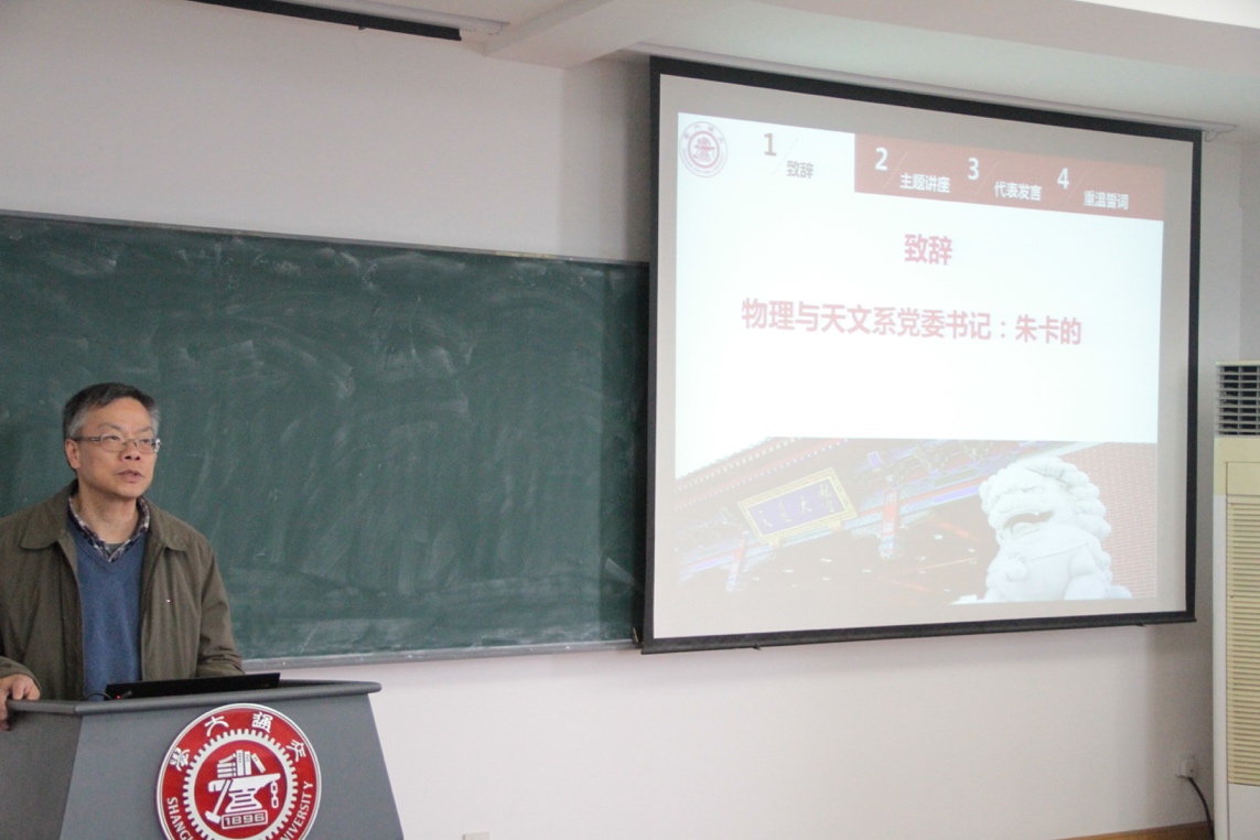 3月18 日下午,物理与天文系2016届毕业研究生党员远航教育活动在物理楼616室举行。物理与天文系党委书记朱卡的,校学指委党建科科长张洋,物理与天文系团委书记梁钦以及2016届全体毕业研究生党员共同出席。大会由辅导员向芷萱主持。