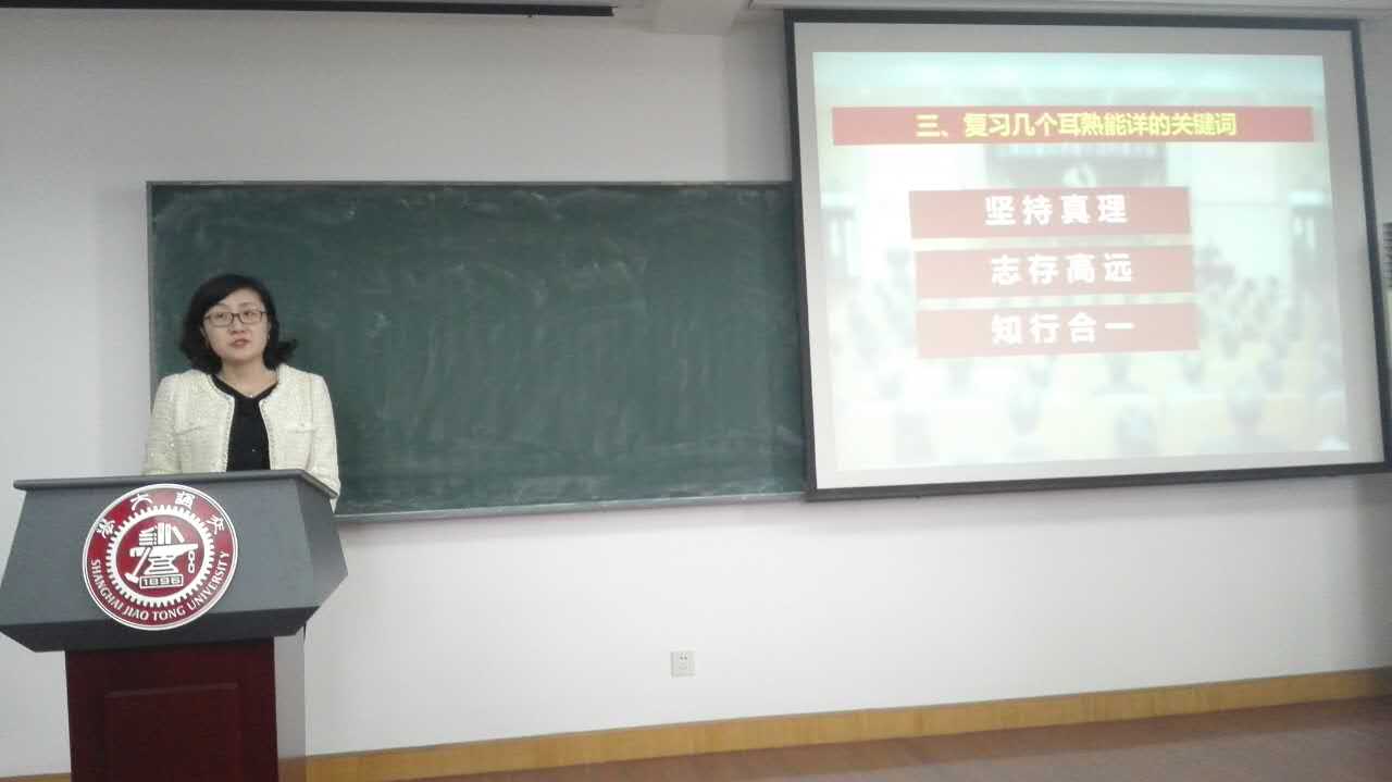 随后张洋老师以“坚定理想信念,以交大党员之名,做共和国的脊梁”为主题,与毕业生党员们进行交流。张洋老师最开始指出,老员工党员是一种稀缺资源,因此每位老员工党员更应该严于律己当作表率。之后张洋老师又与各位毕业生们一起重温了马克思主义的基本方法等经典片段。强调各位毕业生党员要始终坚持真理实事求是,坚持历史唯物主义和辩证唯物主义,要始终坚持中国共产党的优良作风,在今后的工作中也要站在最大多数人的立场来考虑问题关心人民群众。张洋老师在交流中还举了两个典型例子,一位是枕戈待旦的粟裕将军,以此来告诫各位党员要拒绝思想腐化,时刻准备战斗;另一位是交大的国防生员工黄亮,为毕业生们树立了投身于国家,奉献于国家的先进榜样。在最后张洋老师给各位毕业生党员提出了三点要求,即坚持真理,形成独立思考的习惯;志存高远,争取成为栋梁之材;知行合一,在未来的工作中要吃苦在前享受在后。