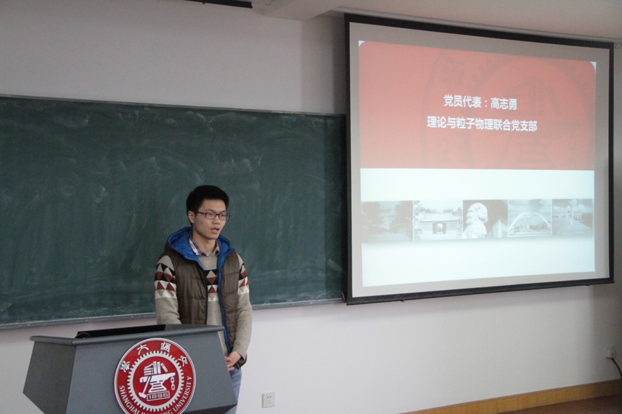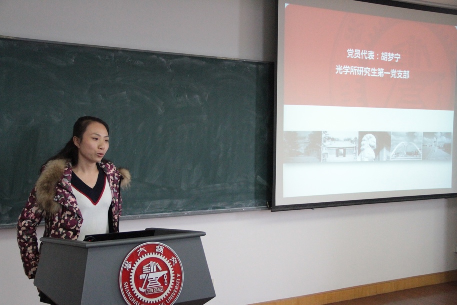 在大会的党员交流环节,两名优秀的毕业生党员代表2016届毕业研究生党员进行了发言。高志勇同学分享了自己在公司生活学习中的点滴,谈到了自己对梦想的坚持和追求,鼓舞各位同学在今后无论多困难都要始终坚持自己的初心,砥砺前行。另一位胡梦宁同学讲到了自己在研究生阶段的经验,谈到了今后的展望与规划,并向各位毕业生党员献上了自己的祝福与寄语。