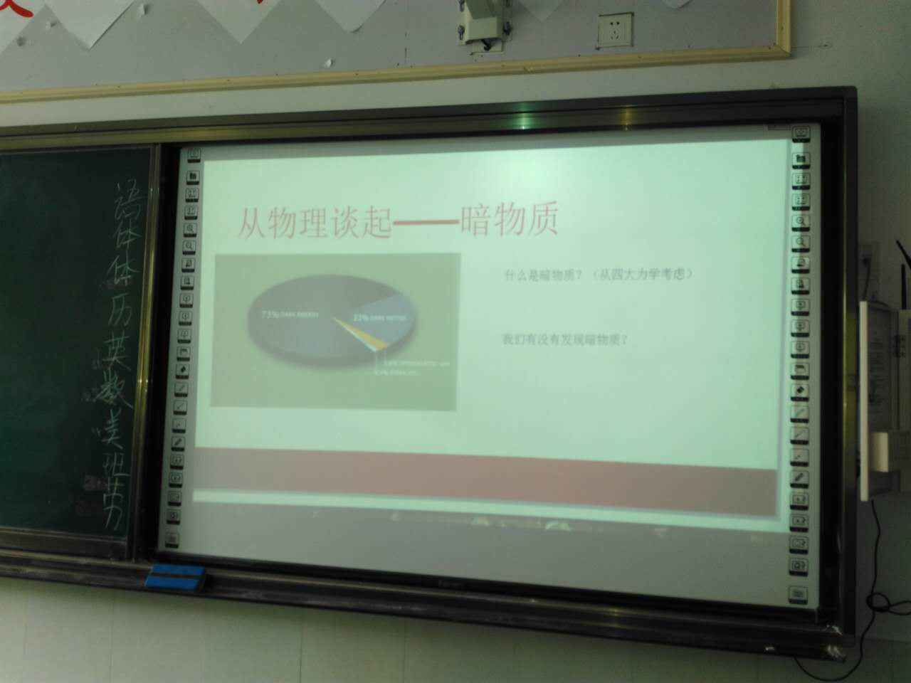 讲座上半段,张丹向大家普及暗物质等物理知识,同学们听得非常认真,原来最前沿的科学研究,也可以用简单易懂的语言让高中生们了解。当张丹提到希望以后在座有人可以参与到基础研究里去的时候,同学们感到很惊讶,仿佛不敢相信,自己离前沿科学研究可以很近。
