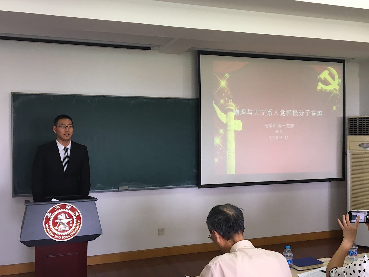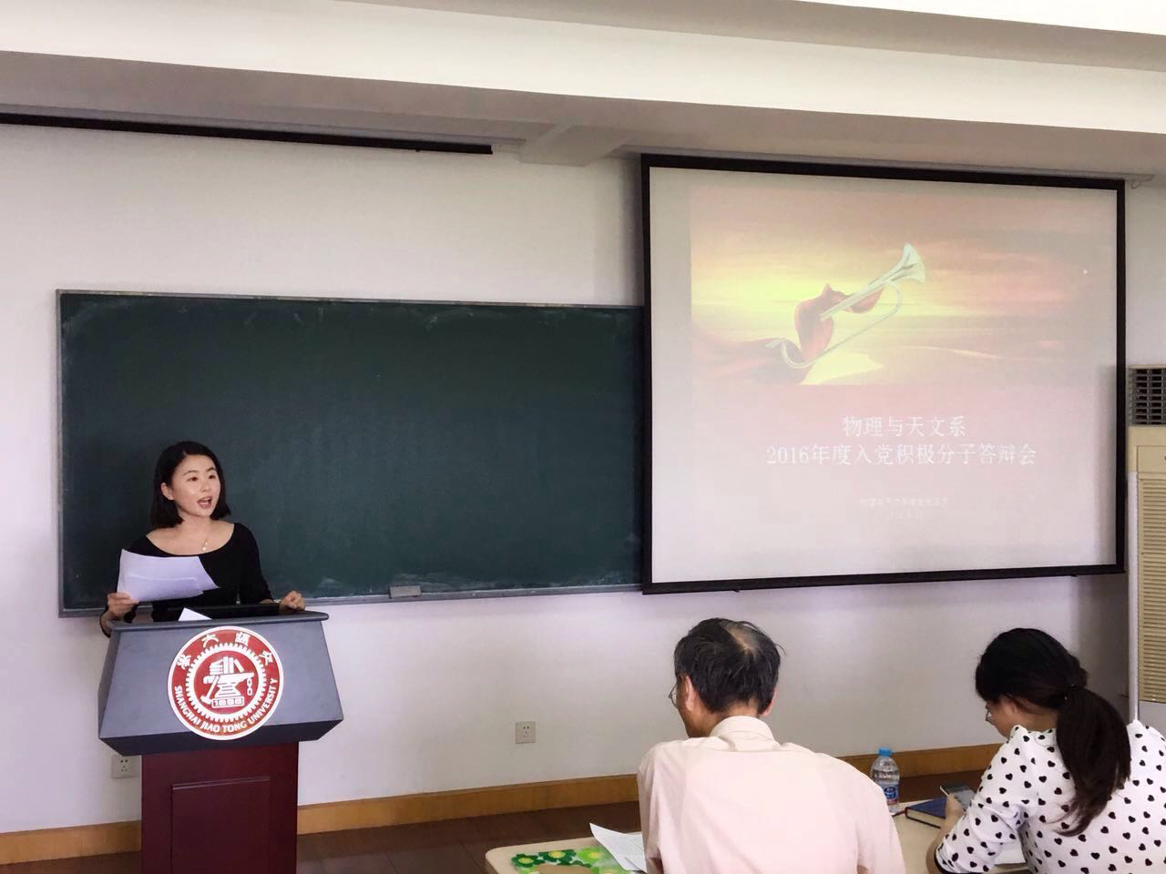 2016年5月11日,物理与天文系在物理楼616会议室举行了入党积极分子答辩会议。物理与天文系特邀组织员裘兆泰老师,团委书记梁钦老师,9名支部书记以及9名发展对象参加了本次会议。答辩会由物理与天文系党建辅导员向芷萱主持。