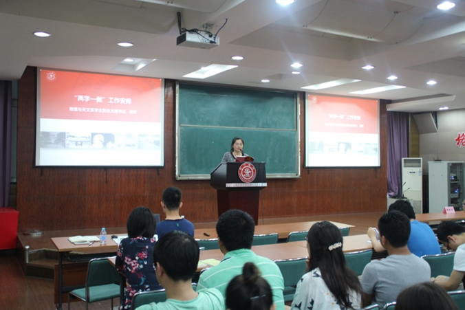 本次活动是物理与天文系“两学一做”工程的开端与起航,今后系里的各项党建工作都将以此为导向,全方位多层次的开展各项活动。