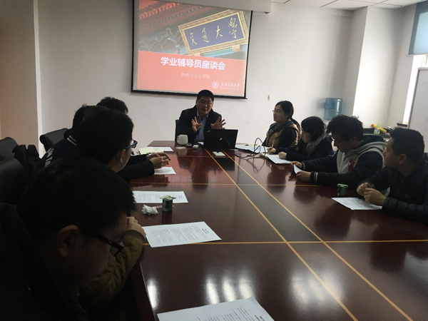 座谈会上,徐剑波书记首先对学业辅导员们在上学期付出的辛劳努力及取得的成果表达了高度肯定与衷心感谢。随后,徐书记就开展学业辅导的初衷与目的进行了阐述。他表示,学业辅导中心主要通过成绩优异的高年级员工以及助教定期辅导低年级员工的形式,来帮助员工提高对物理及学习的兴趣,真正实践“学在交大,爱在物理”的理念。