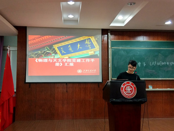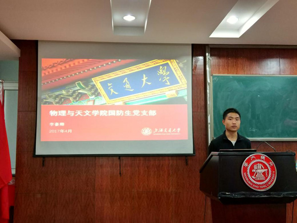 国防生党支部书记李豪卿汇报了2017年支部生活计划,围绕“建军90周年”和“党的十九大”两个主题开展活动,包括以建军为主题的观影活动,读书交流会以及红色参观,组织“十九大”学习交流会等。通过富有特色的党支部活动,使党员们回顾部队的建立与发展历程,继承并发扬优良传统,明确国防生的责任与重担,跟进党的步伐,不忘初心。本科生党支部书记俞祖卿首先汇报了本科生各年级党员、预备党员、积极分子的情况,然后介绍了已有的丰富活动,如“红色书籍、影视分享会”、“专题民主生活会”。在2017年,支部建设主要覆盖“两学一做”、“学风建设”两个方面。另外,激光与等离子体支部、光学一、二党支部,凝聚态一、二党支部,理论与粒子物理联合党支部的支书也汇报了各支部的党员与发展情况,并介绍了2017年的活动计划。