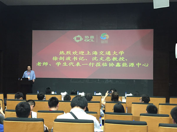 吕春芳声形并茂地介绍协鑫集团、中央研究院规划定位和员工职业发展建议及导引,鼓励员工坚持实践、勇于创新,并表示欢迎交大学子加入协鑫大家庭,共同推动绿色能源发展进程。