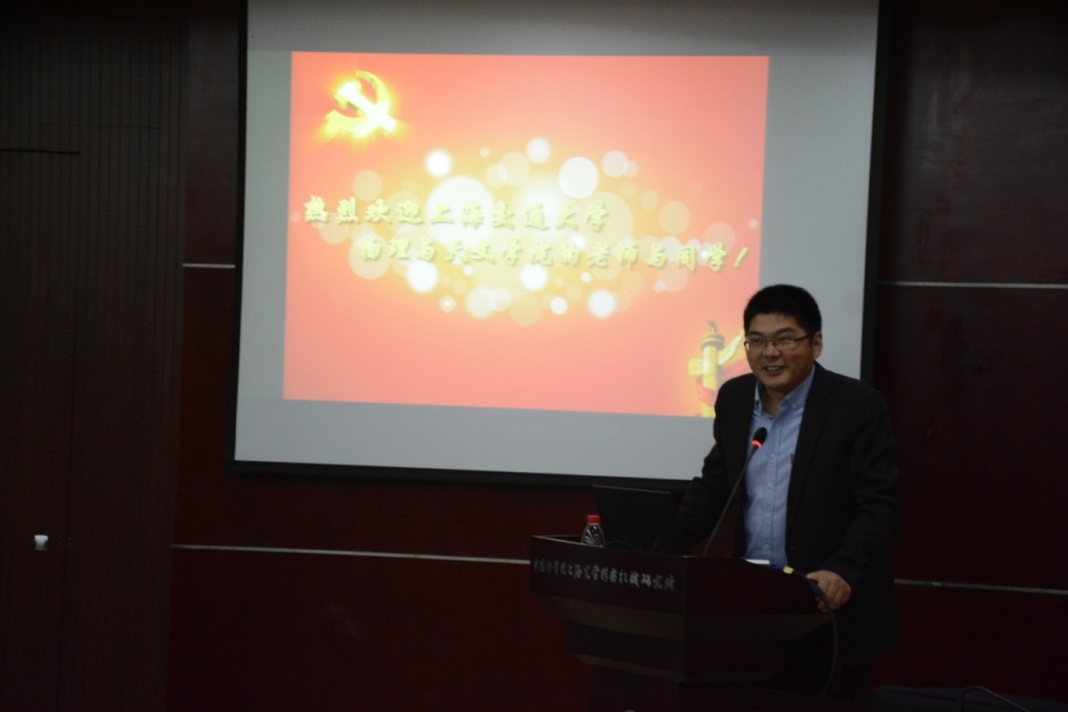 随后,光机所联合室办公室主任刘德安研究员从天时、地利、人和三个方面介绍了光机所与交大物院支部共建的机遇与优势。他以高能激光聚变——“神光”装置为例,指出先进的科学发展装置与技术是使中国的科技走向世界先进水平必不可少的一部分。刘德安研究员认为双方支部共建是为党组织注入新的活力,希望双方依托学科发展优势,全面开展共建合作。