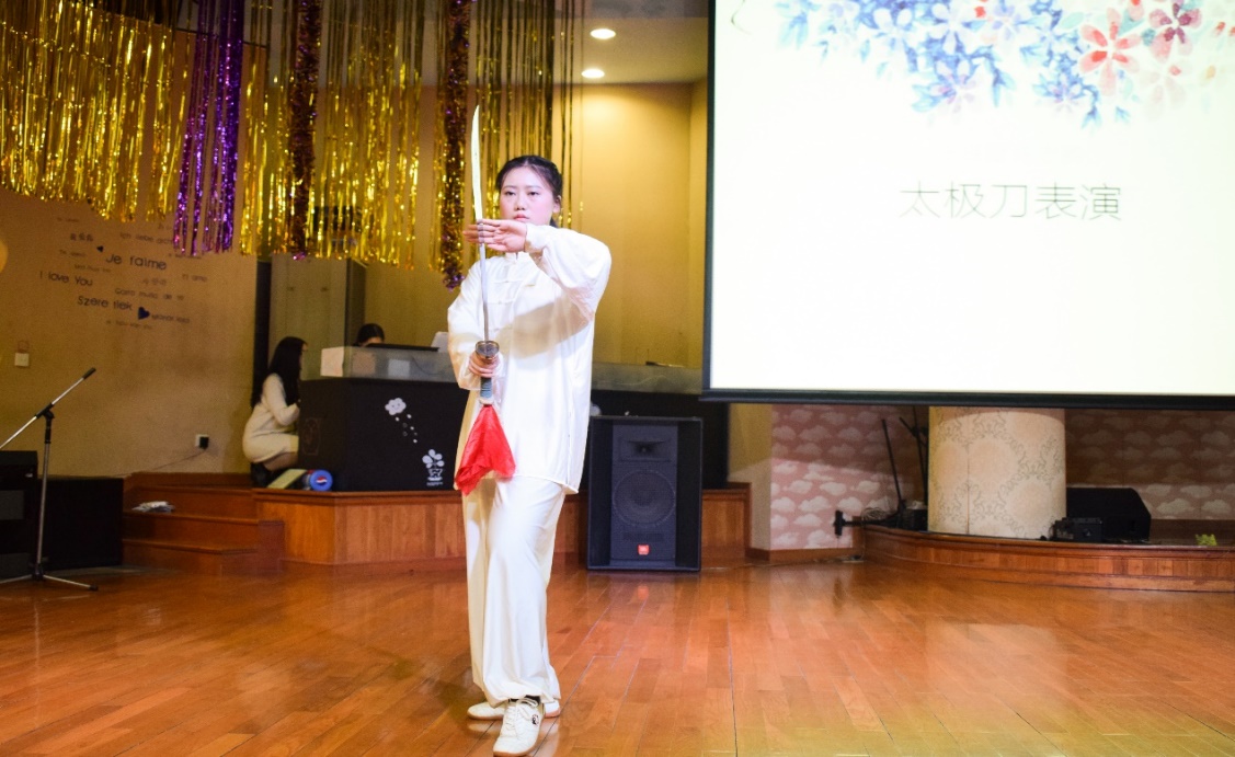 首先,王峄崐同学及其搭档带来了刚柔并济的太极刀表演,“唰唰”的剑声展现了物院女生巾帼不让须眉的豪情。由此,本次晚会正式拉开序幕。
