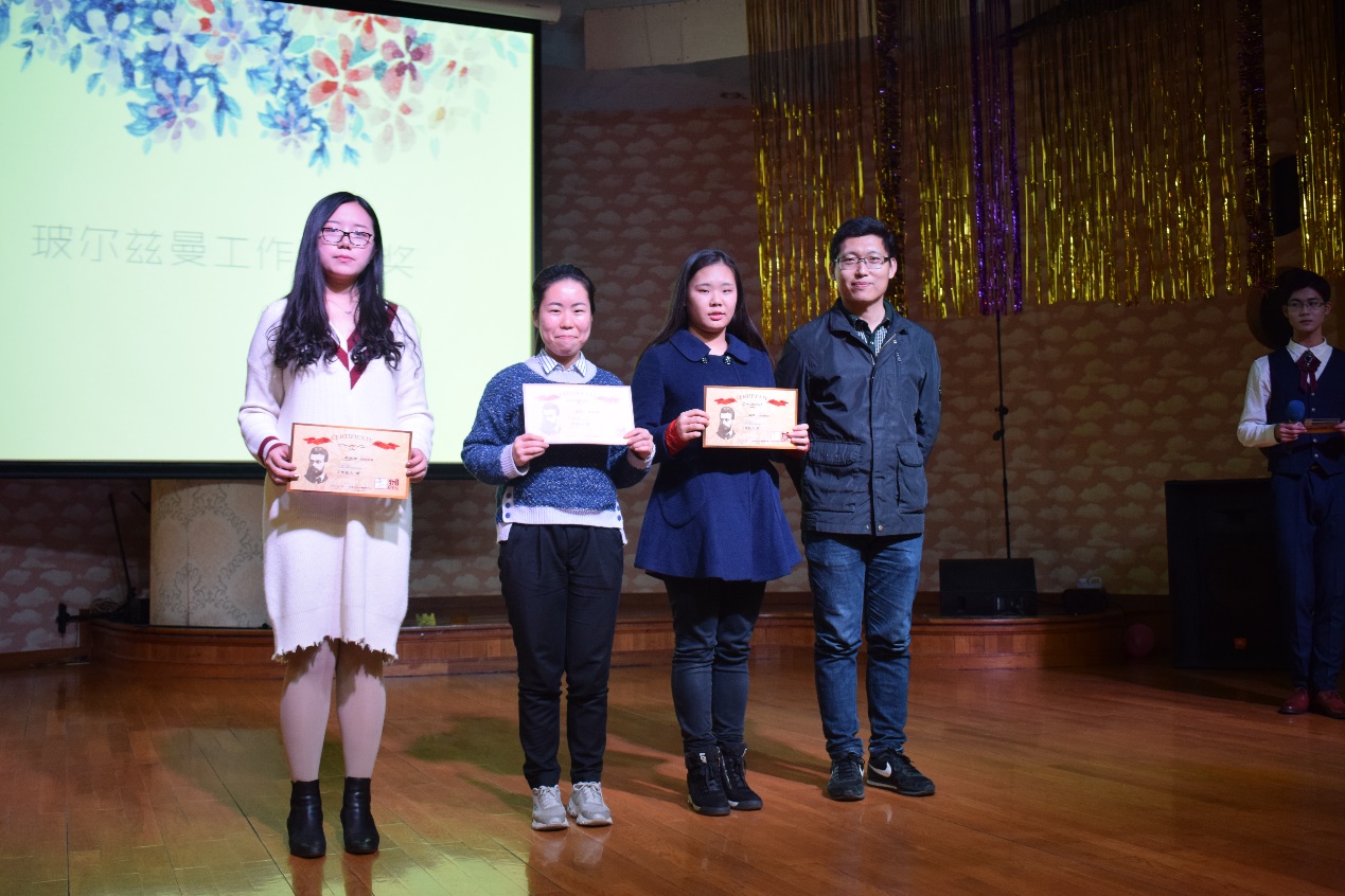 张鹏杰副经理颁发最受员工欢迎老师奖,本年度共有孙杨、洪亮、顾威三位老师获得该项殊荣。孙扬与洪亮老师发表获奖感言,承诺将不负期望,继续努力。