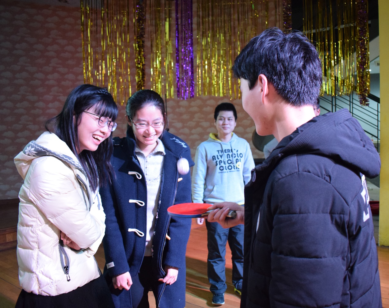 紧接着,活泼有趣的游戏环节在大二顾晓凯同学的主持下顺利开展,同学们在四轮游戏中增进了友谊,现场氛围轻松活跃。此外,大二的员工杨振乾以一首《千与千寻》的经典曲目《Always With Me》代表全体高年级同学对新生的到来表达了热烈的欢迎。