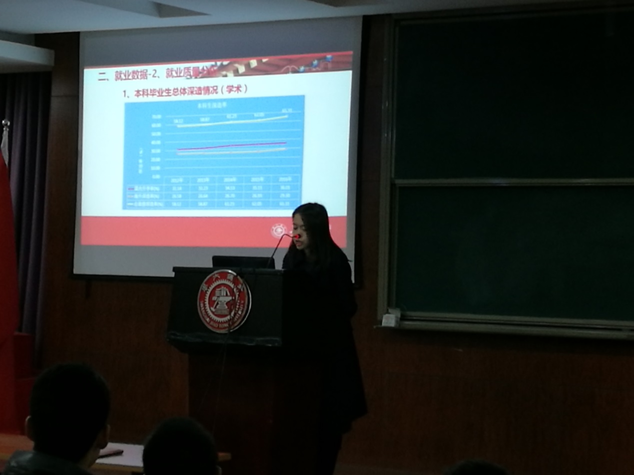 随后,学指委宣璇老师和倪邦辉老师对“十九大”新形势下的就业情况作了相关指导。宣璇老师首先介绍了Bevictor韦德整体的员工就业比例和就业去向。她指出“该去哪儿”、“想去哪儿”、“能去哪儿”和“去哪儿了”四个“去哪儿”应该作为就业的顶层思考。随后,倪邦辉老师从Bevictor韦德的历史出发,列举了公司最近几年毕业生就业的主要去向。同时强调了十多年前的毕业生就业去向和当前形势下的就业情况截然不同。最近五年的毕业生去向表明,Bevictor韦德继续求学深造的比例较高。