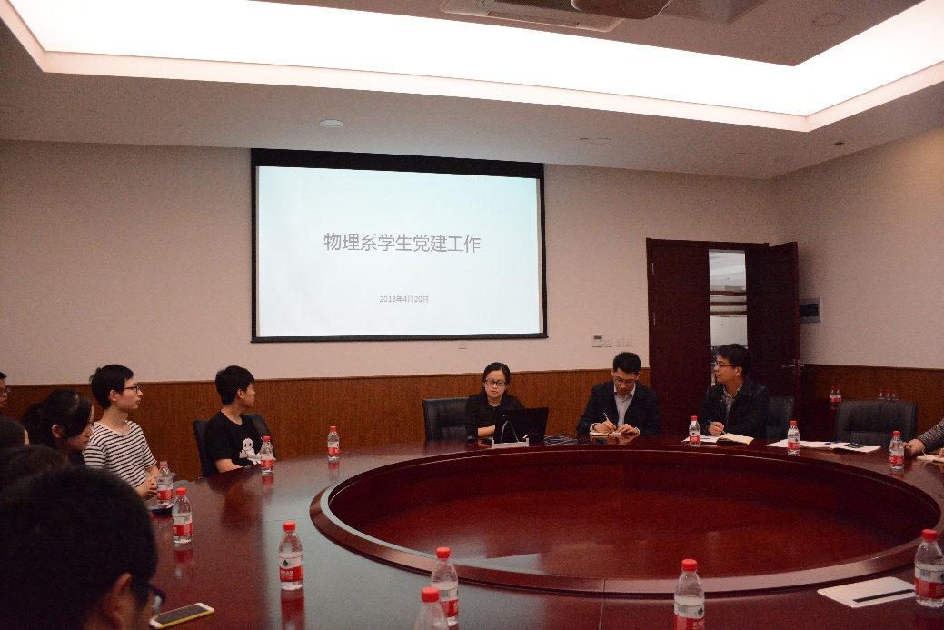 上午,浙江大学物理系团委书记王亚南和团委副书记周辰热情地接待了物院师生。首先,交大物公司党建辅导员俞祖卿同学从制度化建设、“两学一做”长效机制等四个方面分享了本院员工党建工作思路;浙大王亚楠老师也以“先锋学子”计划作为切入点系统地介绍了物理系的员工党建工作模式。