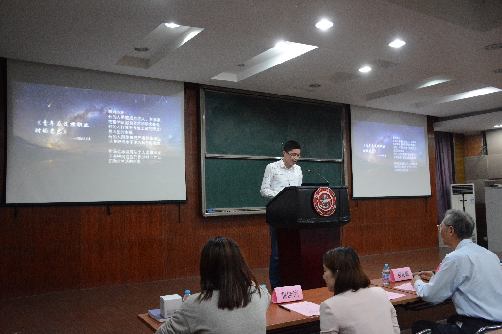 经过评比,凝一支部的丁冬凭借对《青年在选择职业时的考虑》充满激情的诵读和生动具体的阐释获得本次比赛的一等奖;凝一支部的徐锦秋和凝二支部的李方刚获得二等奖;光一支部的颜硕等三名选手获得三等奖;本科支部的张世博等四名选手获得优秀奖。