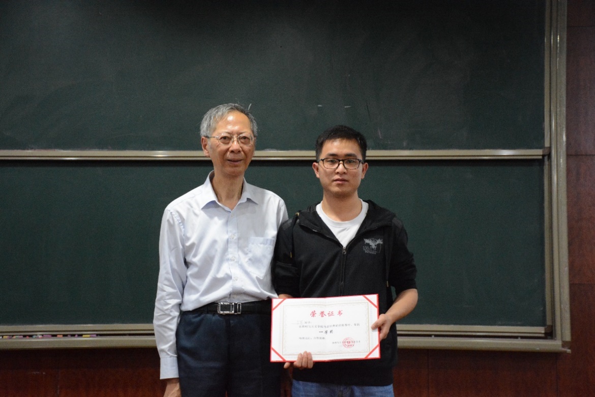 裘兆泰老师为一等奖获得者颁发奖状。