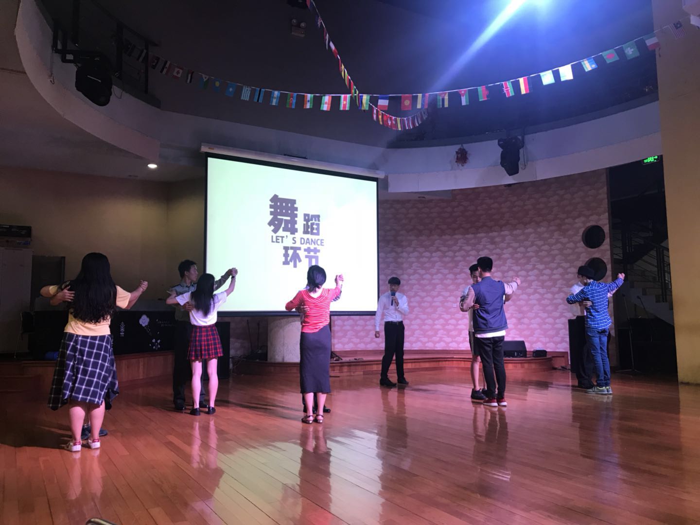 国标舞社的专业舞蹈老师受邀参加本次毕业舞会,并教授毕业生们简单的舞蹈动作。在悠扬的音乐中,从步法到手势,老师引领同学们初步感知了华尔兹的美妙。同学们逐渐掌握节奏纷纷进入舞池,跟随音乐享受此刻陪伴。