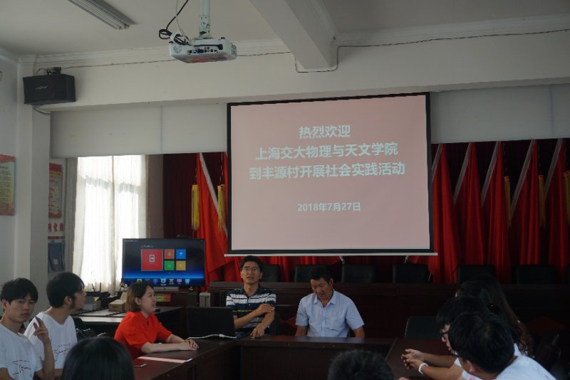 早上,同学们乘坐三轮车来到了丰源村村委会进行座谈会,座谈会由张仁伟主持。会议伊始,同学们首先观看了洱源县的宣传片,对洱源县的整体情况和扶贫工作概况有了初步了解。之后,丰源村书记杨玉清发表讲话,对同学们的到来表示欢迎,并向同学们介绍了丰源村的整体情况,同学们了解到大理白族自治州洱源县丰源村拥有9个自然村,其中包括7个坝区、2个山区。该村有28个村民小组,其中大小南极村尤为贫困。全村5242口人,传统上是以种植业和畜牧业为主。接着,丰源村村主任杨玄深入介绍了他所负责的具体工作,包括洱海保护、坝区工作等。两位村领导发表完讲话以后,同学们也提出了自己的问题。针对同学们提出的村里党建活动的开展情况,杨玉清书记表示,村里的党建活动还不是很完善,例如分片保洁、相互监督等。针对同学们对扶贫具体举措的问题,杨玉清书记表示,国家政府会建立档卡贫困户,向贫困户每月补贴3000块钱,让村民不愁吃、不愁穿,在教育、医疗、住房上满足最低生活保障。最后张仁伟详细介绍了作为第一书记在挂职期间的主要工作,并分享了作为挂职干部的工作感悟,并希望同学们认真实践,多提想法,利用专业知识为扶贫工作做出实实在在的贡献。