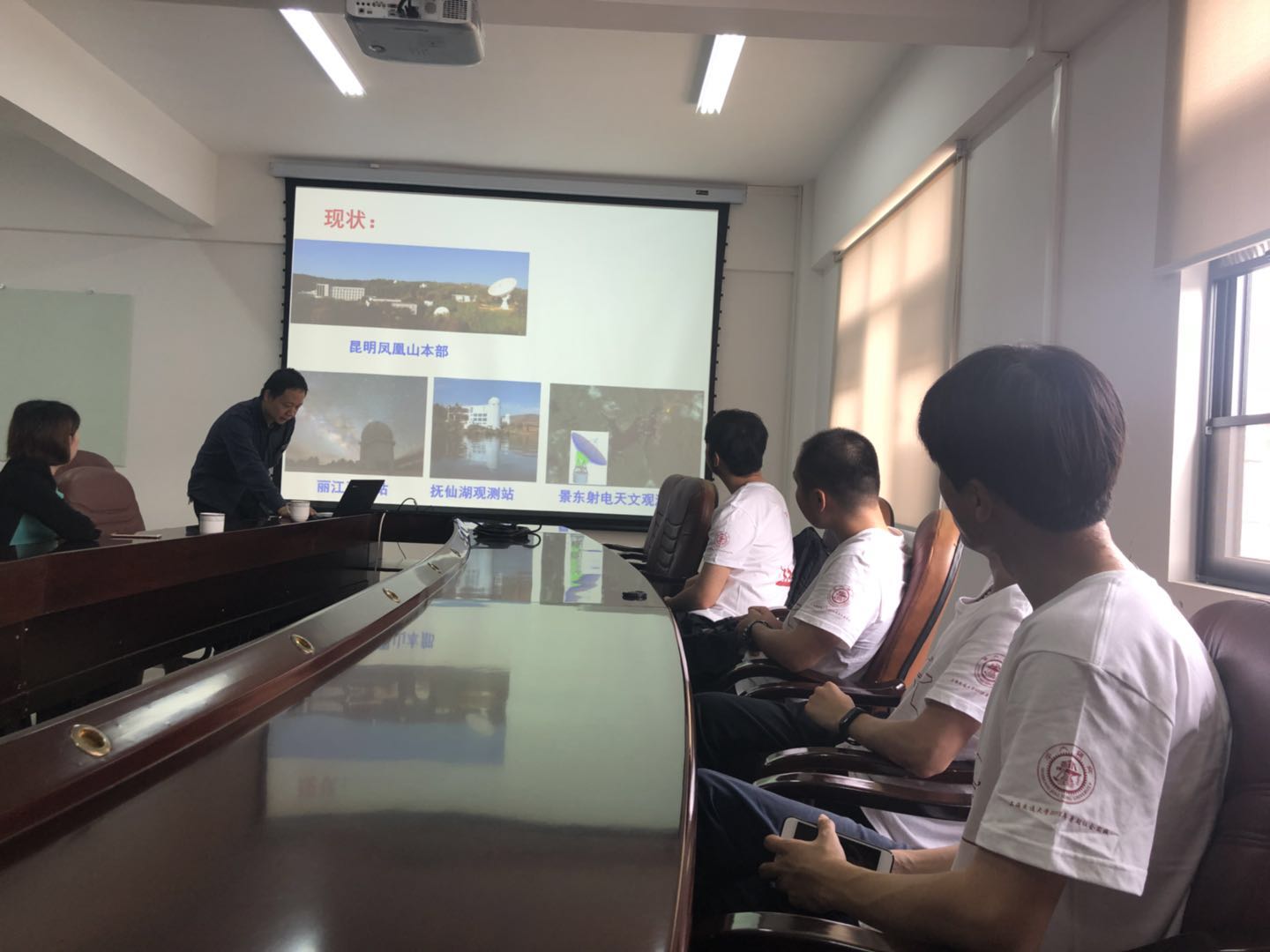 云南天文台的人事教育处处长许华崟热情地接待了实践团,并为同学们讲解了云南天文台的历史以及发展现况,讲述了云南天文台作为首批进入中科院知识创新工程的综合性研究所、中国南方最大的天文实测基地,从抗战时期成立至今的风风雨雨,同时也讲述了中科院云南天文台如今雄厚的科研实力。许处长表示,非常欢迎交大学子到云南天文台从事研究工作,共同为祖国天文学的前沿研究贡献力量。