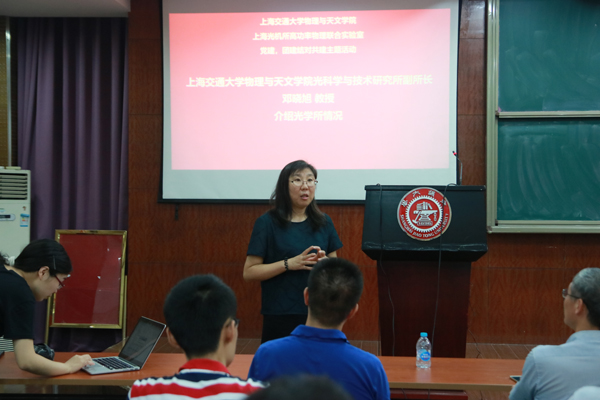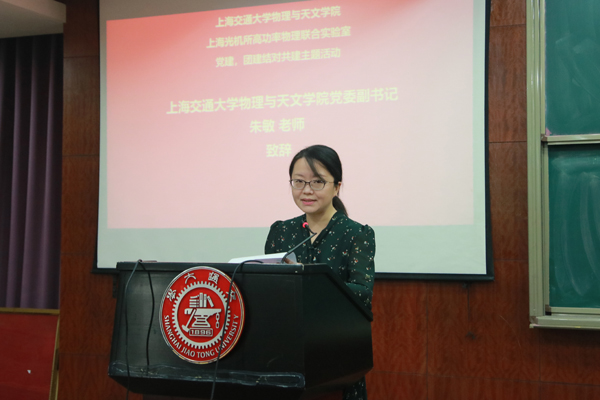 活动开始,公司党委副书记朱敏老师致辞。在整体介绍Bevictor韦德员工党建的情况后,朱敏老师表示,自去年11月双方第一次党建结对活动之后,Bevictor韦德就一直期待着上海光机所的党员同志们来到交大物院进行深入的交流,她相信这次的交流会让双方的党员们进一步互相了解、互相学习、共同进步。对于未来支部共建和学术培养,朱敏老师期待两方能继续定期进行合作与交流,发挥科研高校与院所的特长,互补互助,把党建工作推进到一个新的台阶。