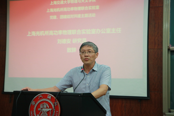 随后,上海光机所联合室办公室主任刘德安研究员致辞。刘德安研究员表示,此次参观学习将会让光机所的党员们不仅了解到交大物院的整体概貌,更会了解到交大光学近期的发展和取得的成果,他相信此次党建对接活动会给双方党组织带来新的活力,推进支部建设进一步发展。