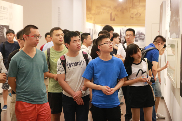在结束了物理楼的交流后,全体师生在讲解员的带领下,依次参观了李政道图书馆“问道”、“悟道”、“传道”和“超弦”四个展区,了解李政道先生在高能物理、粒子物理等方面的杰出贡献。