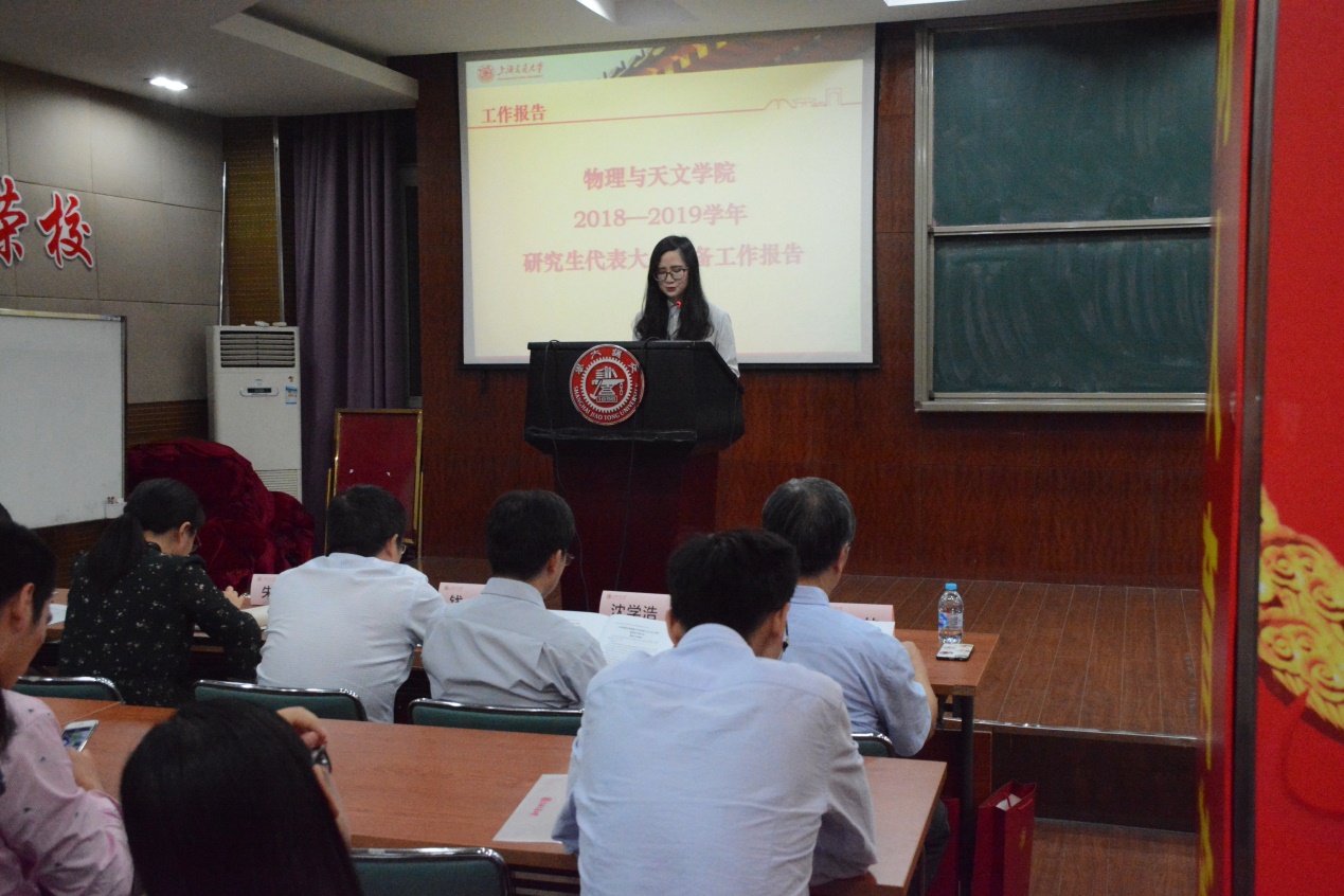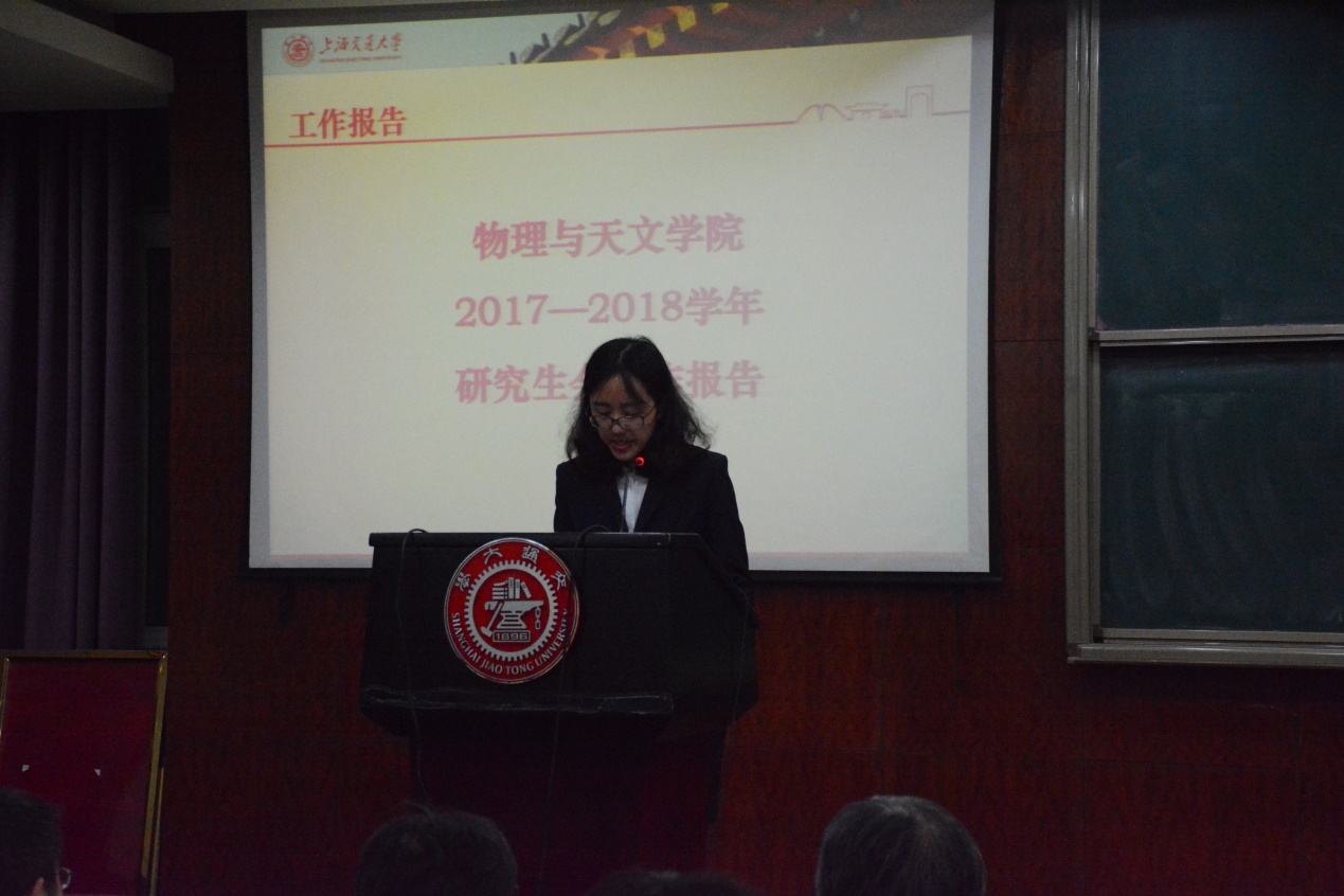 接着,由研代会筹备委员会代表、院研究生会副主席张嘉琳对本次研代会筹备工作进行汇报,详细阐述了筹备工作的流程及具体分工。紧接着院研究生会主席何谐对研究生会上一年的工作做了总结,简略回顾了过去的一年里院研会工作中表现出的优点与不足,提出了亟待改进的问题并对新的一年研会的工作作一展望。